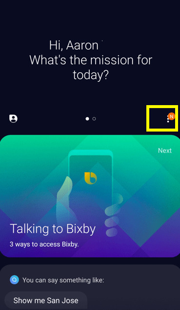 6. Press your bixby button once now, and set her up if you haven’t done so (you will need to agree to some terms and conditions).