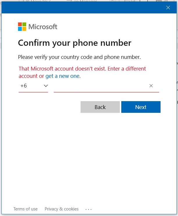 “The Microsoft account doesn’t exist. Enter a different Account or get a new one.”